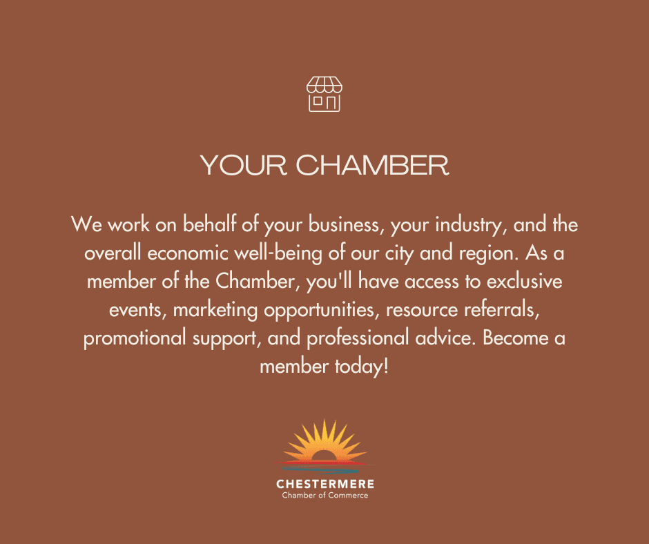 Founded in 2011, the Chestermere Chamber of Commerce brings together businesses of all sizes to build a strong, connected, and resilient local economy. We support members through networking, resources, education, and community partnerships that help businesses grow and succeed. Together, we’re shaping a vibrant, thriving Chestermere where local businesses can flourish.
